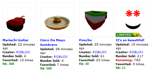 ROBLOX wishes all of you a happy Cinco De Mayo! We’re celebrating with some cool items. Check them out: