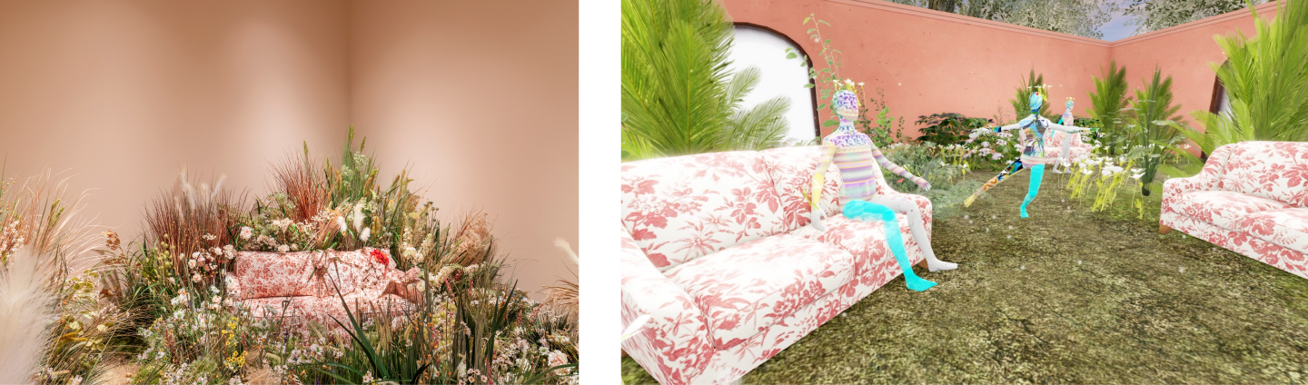 Gucci Garden Archetypes – Diorama in Bloom (left) / Gucci Garden Virtual Exhibition on Roblox (right)