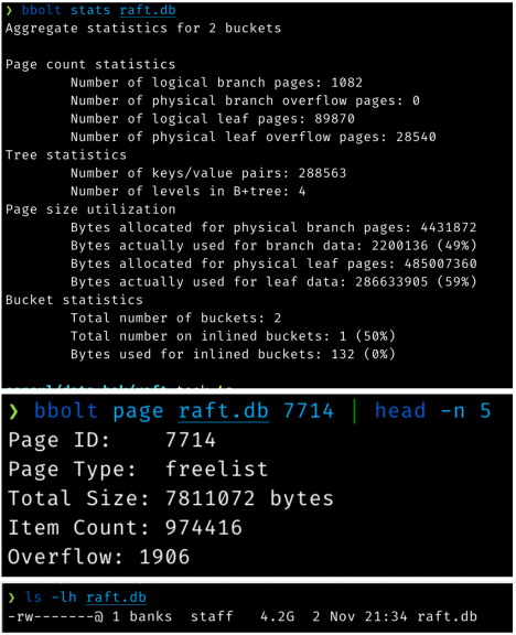 That means, for every log append (each Raft write after some batching), a new 7.8MB freelist was also being written out to disk even though the actual raw data being appended was 16kB or less.