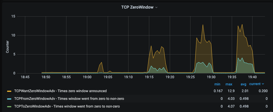 Back pressure on these operations also created full TCP buffers and contributed to 2-3s write times on unhealthy leaders. The image below shows research into TCP Zero Windows during the incident.